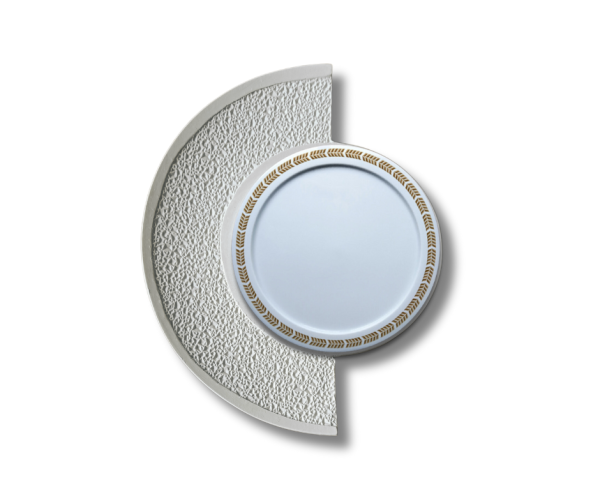 Ce centre d’assiette en porcelaine de Limoges se cale sur l’assiette de présentation en jesmonite de votre choix (vendue séparément ici).